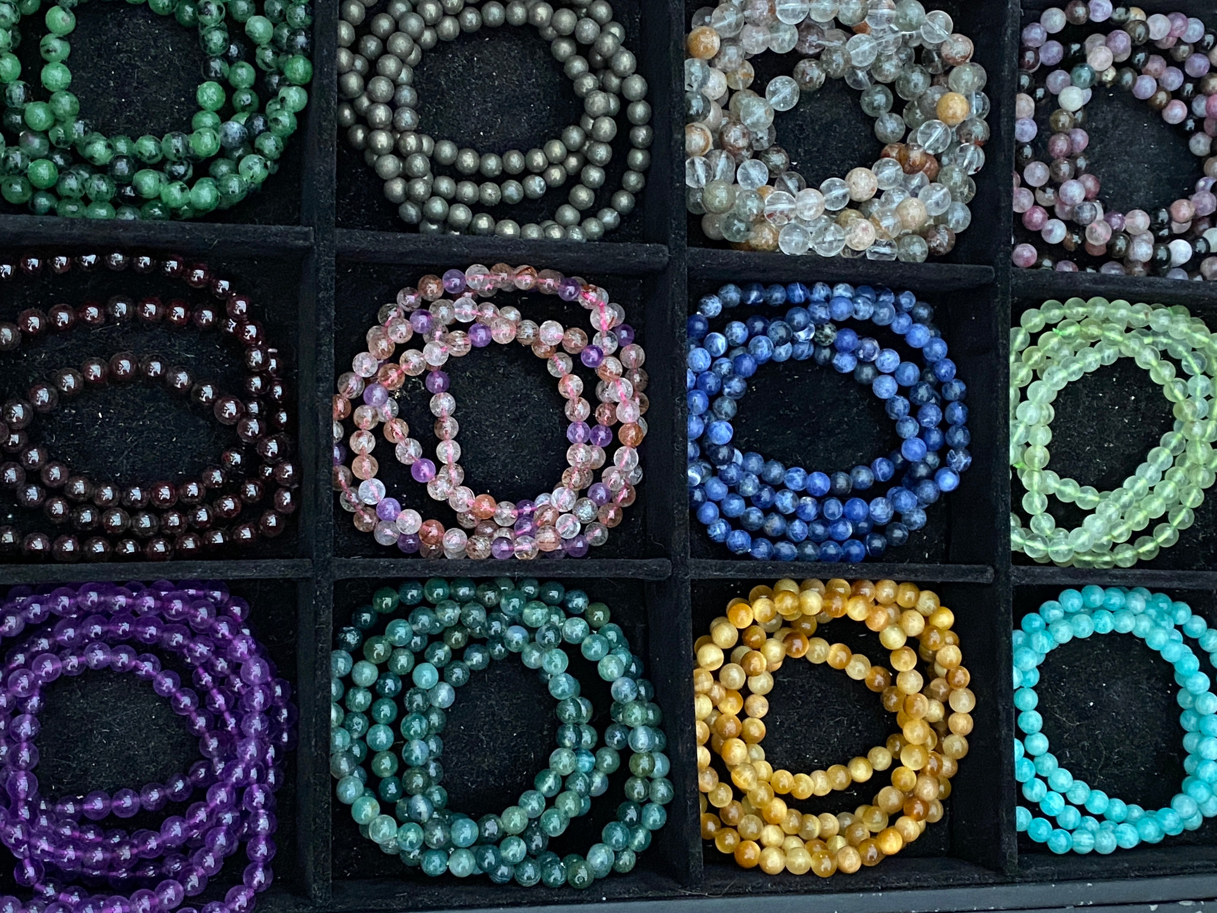 Et udvalg af krystaller der kan støtte dig, hvis du føler angst eller nervøsitet.